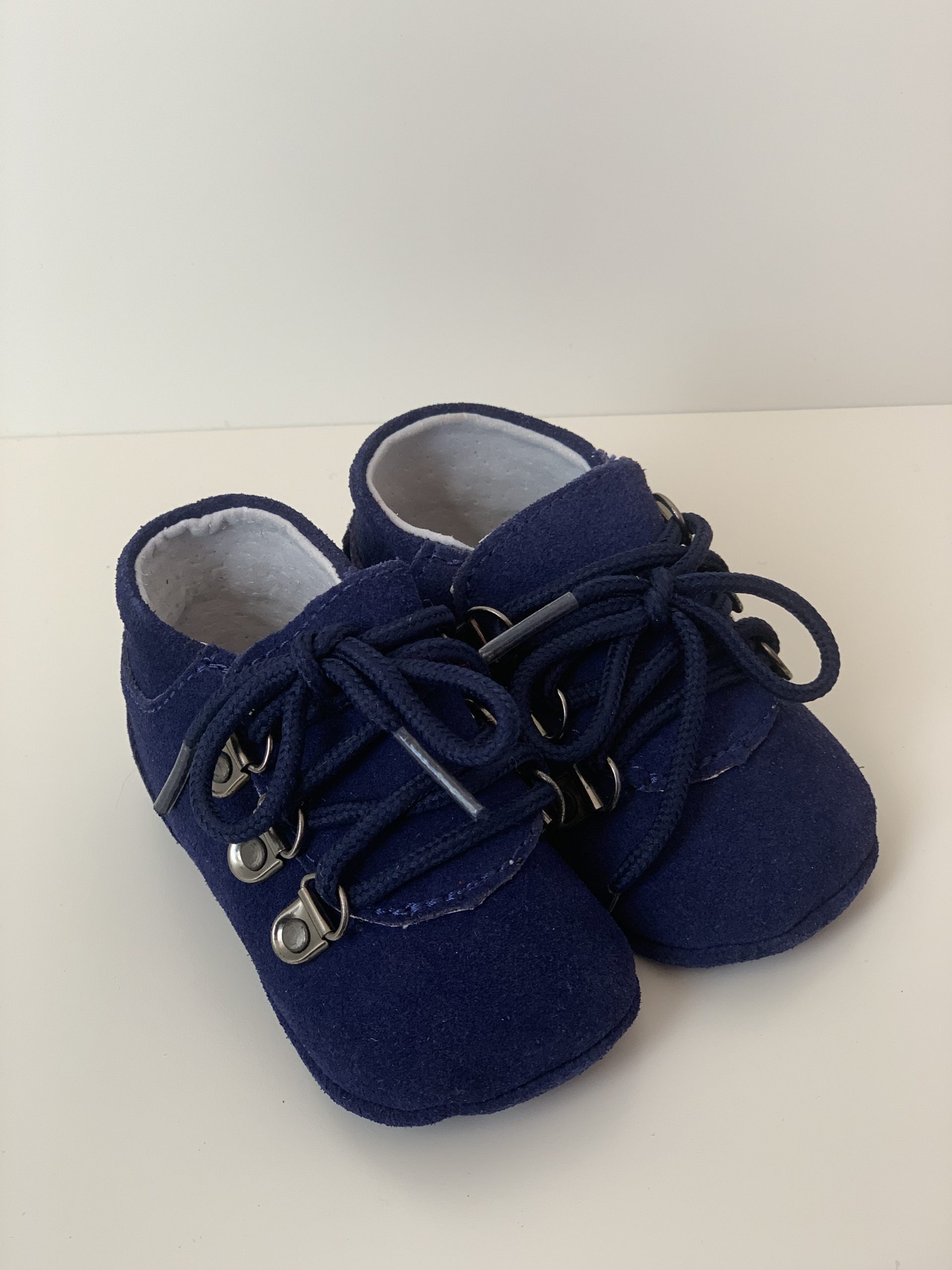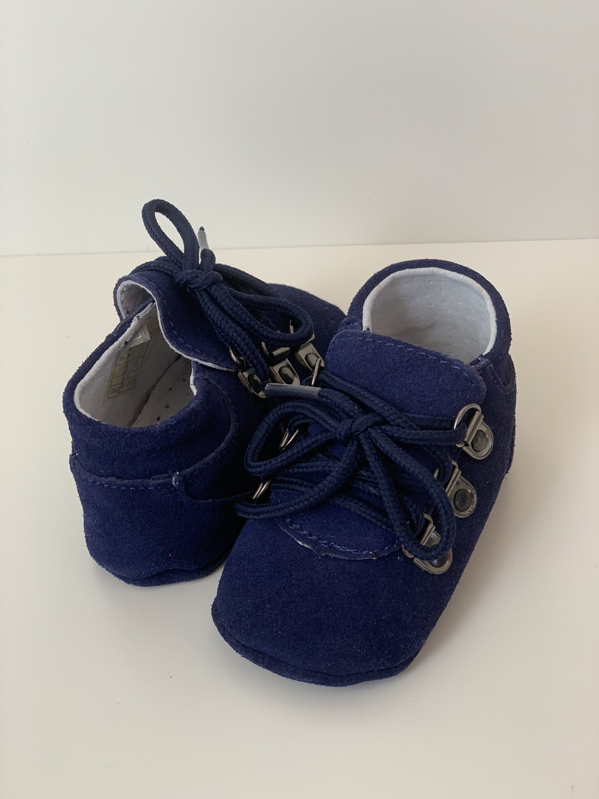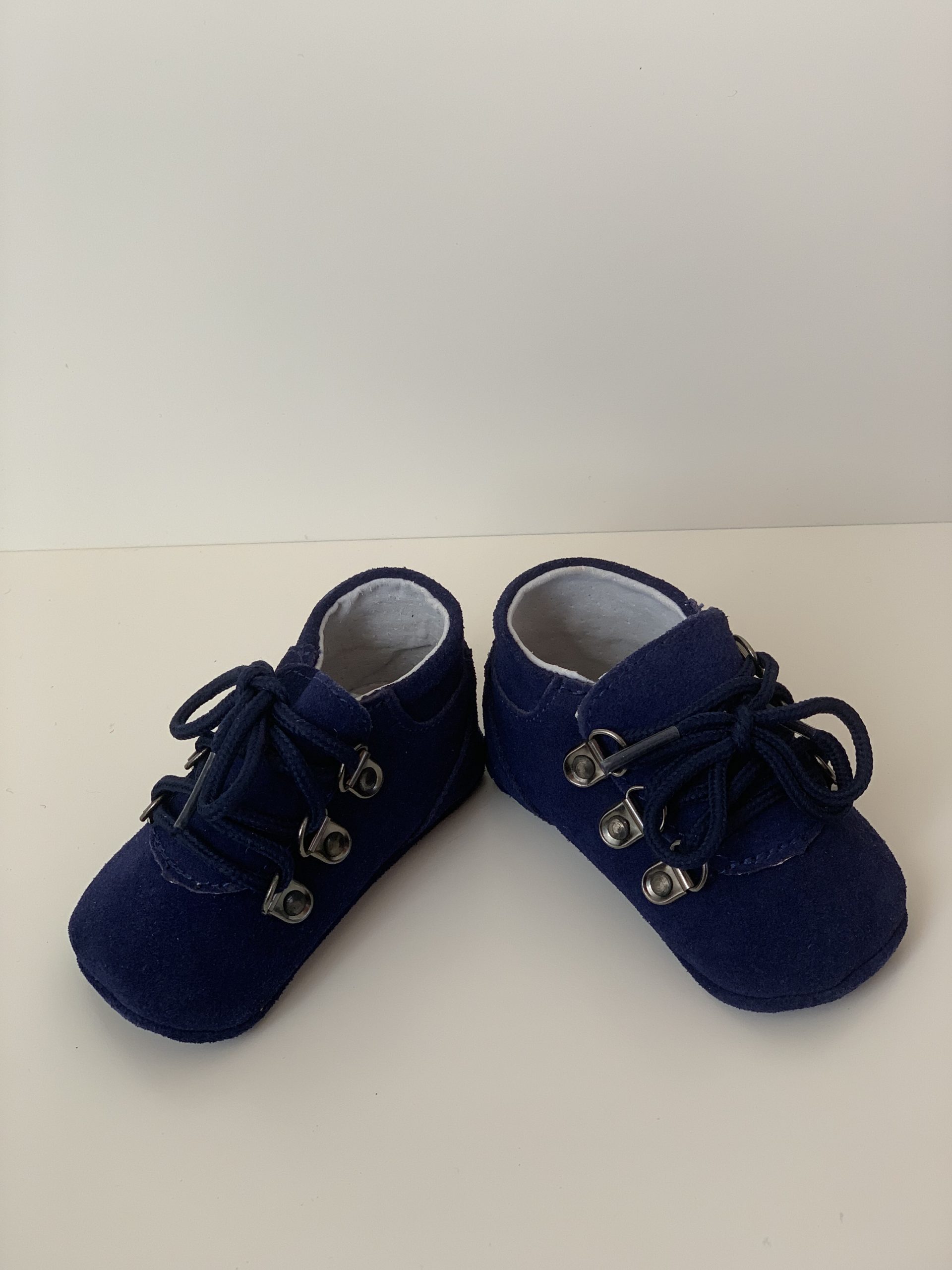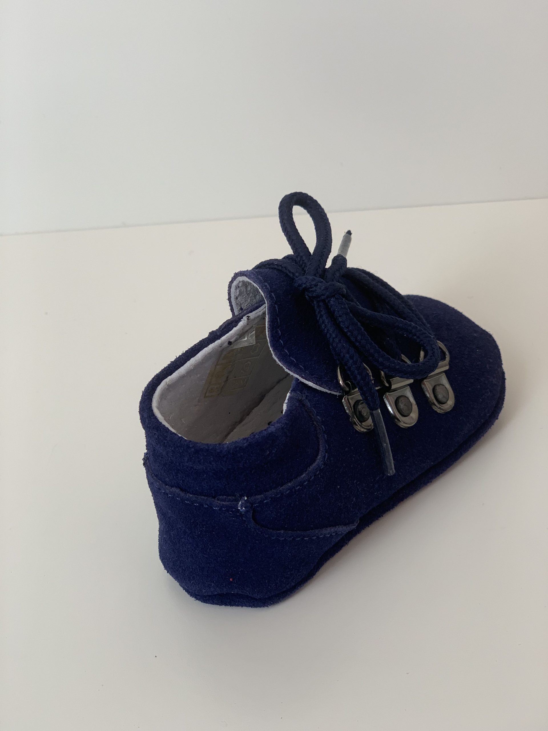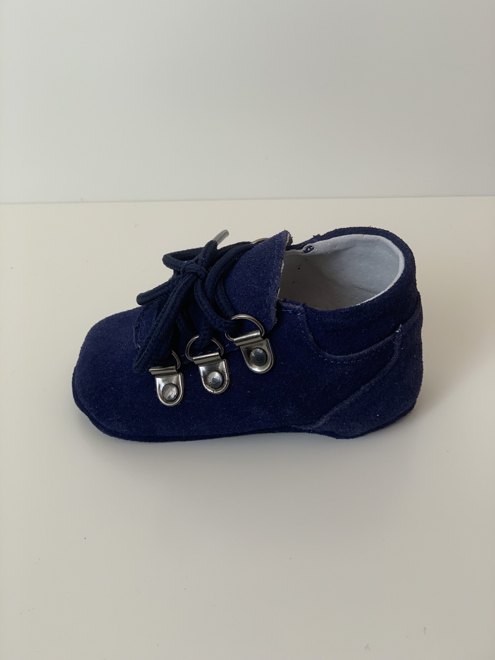 Botita con remaches en serraje azul marino, plantilla de piel sin suela. Es una botita flexible, ideal para bebés que doblan y flexionan los pies sin parar. Entre sus cualidades destacan que no tienen contrafuerte. Se trata de unas botitas para bebés flexibles, cómodas y ligeras. Este calzado brinda una sensación natural al caminar. Estas botitas permiten que se muevan con total libertad y comodidad. Marca Bubble.