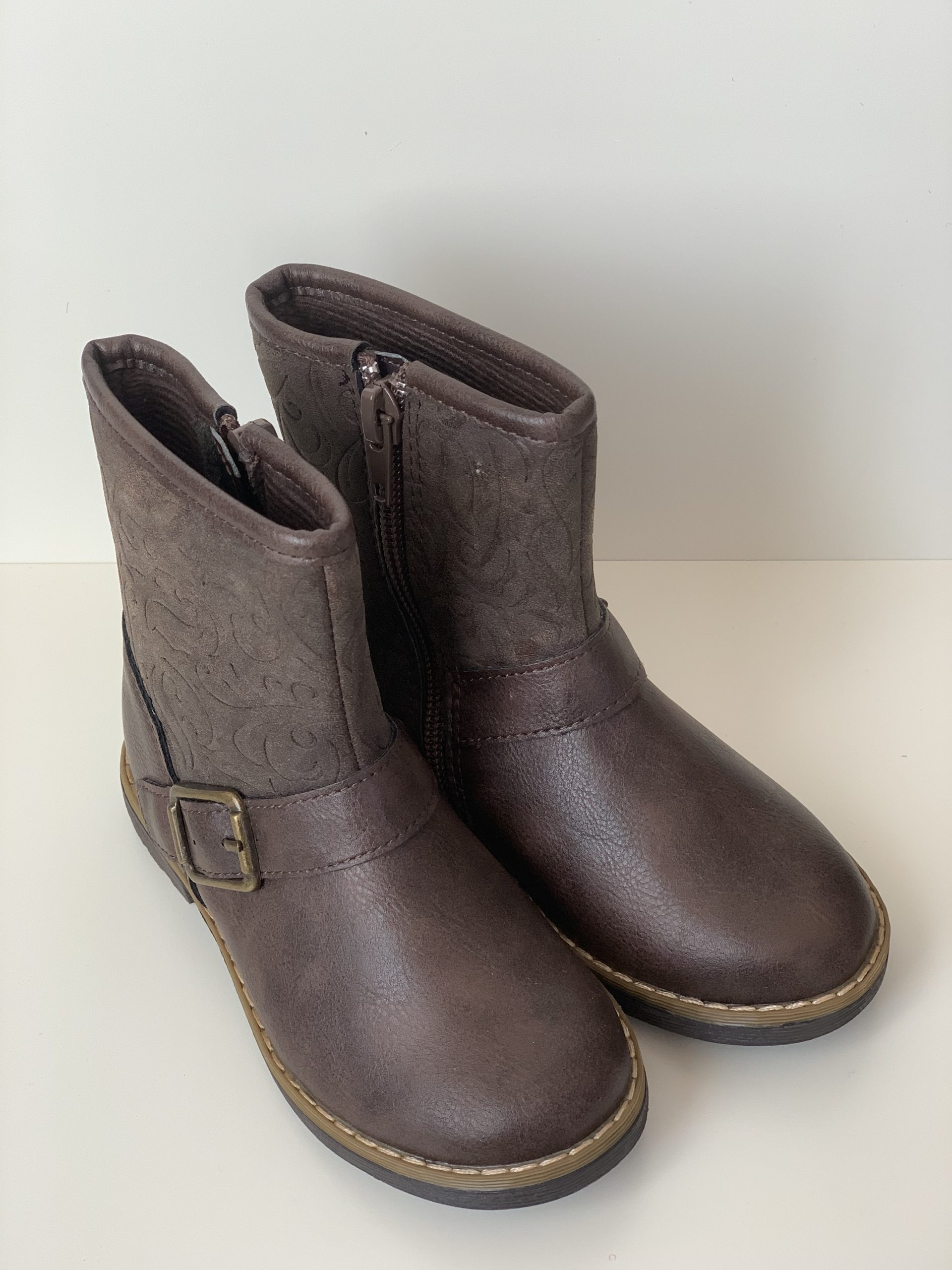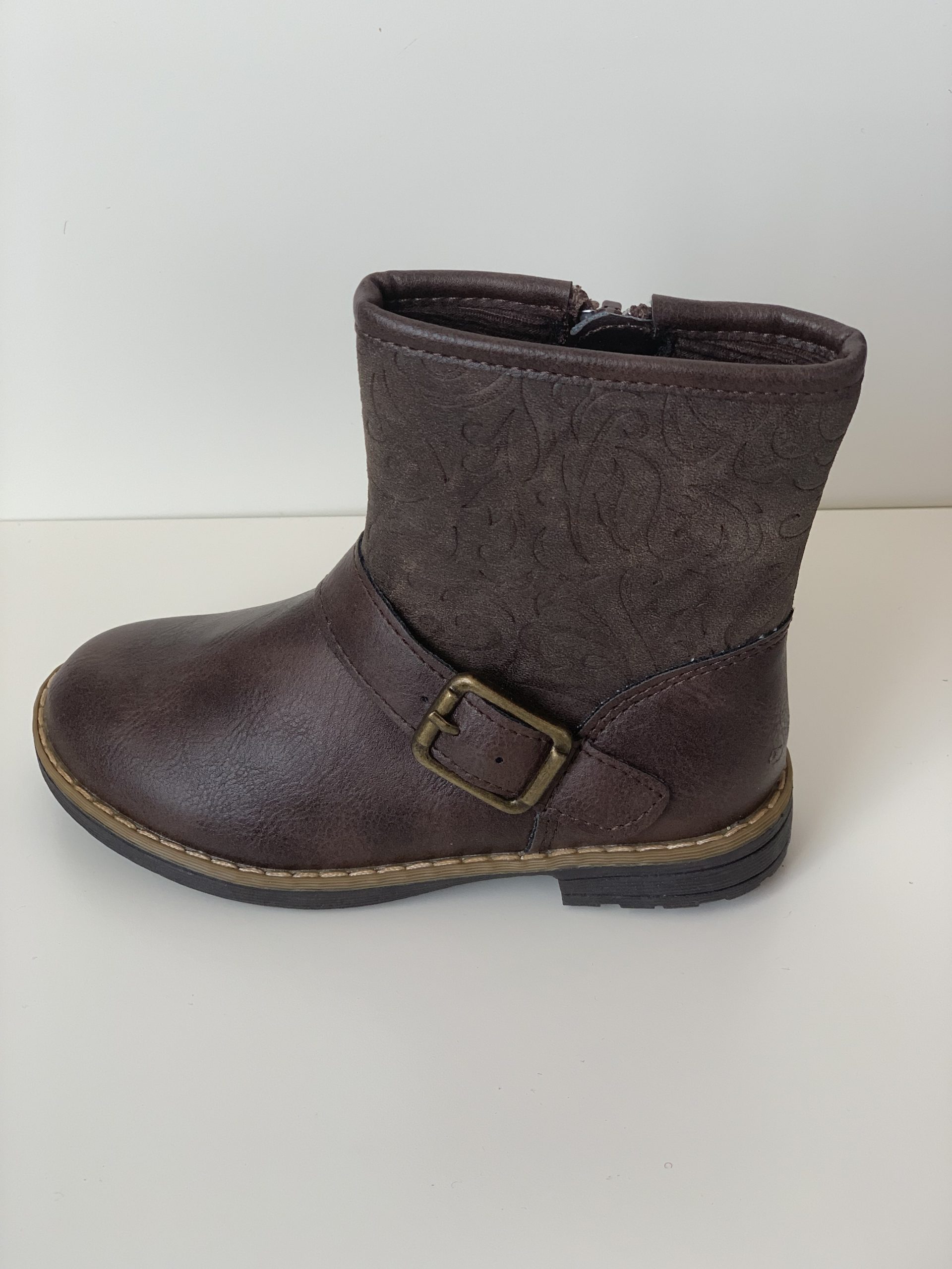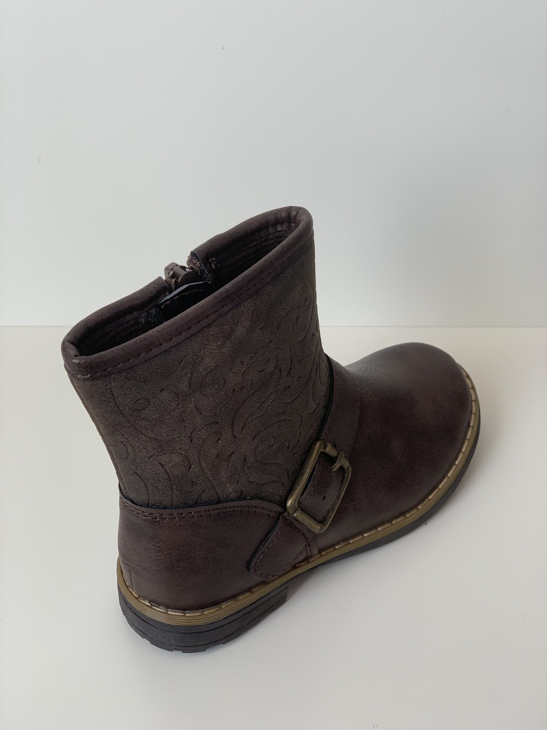 Bota de media caña para niña con hebilla/grabado de adorno y cierre de cremallera. Tiene una suela antideslizante y va cosida para una mayor resistencia. Son ideales para presumir de estilo. hecho en España por Bubble.